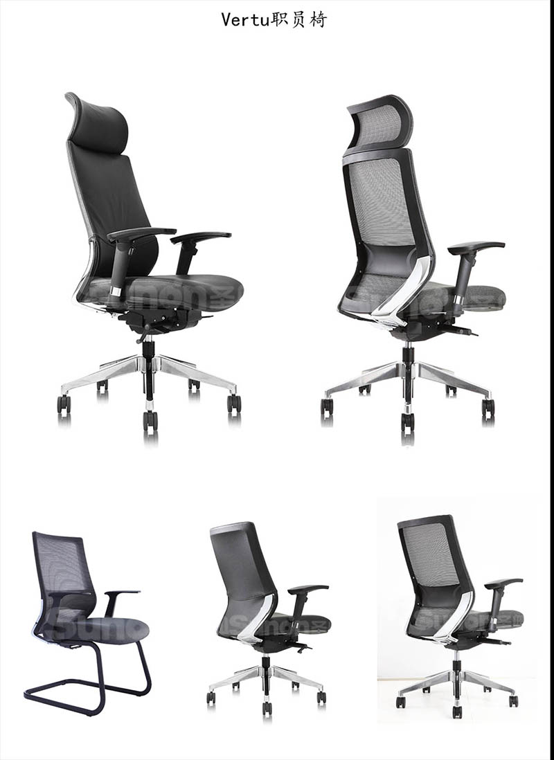 款式有网布和皮款两种: 自然贴合的人体曲率 自适应的背部支撑 自然贴合的人体曲率、自适应的背部支撑。 家族式系列设计: 延续柔美曲线、对角式转角连接家族元素。 满足不同空间配置: 满足公共职员区和系列主管工作位需要。 采用自重式机构 ,实现更多的功能调节 通过对于机构手柄的调节,可以实现座椅高度, 倾仰角度,坐面前后距离的调节,赋予产品更 多的功能选择。