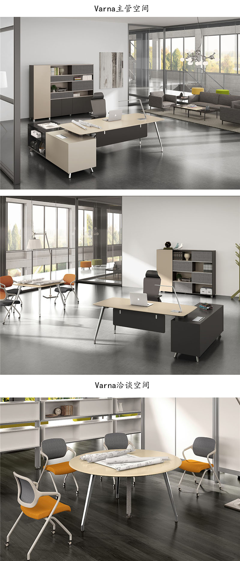 以芭蕾舞者的向上姿态,刚柔并济,以空间美学改变办公状态,让艺术与美成为一种无声的力量. 金属、钢化玻璃、毛毡、油漆、E0级环保基材等多种材质的运用。摩卡色、流星灰、卡斯丁橡木新色彩运用。